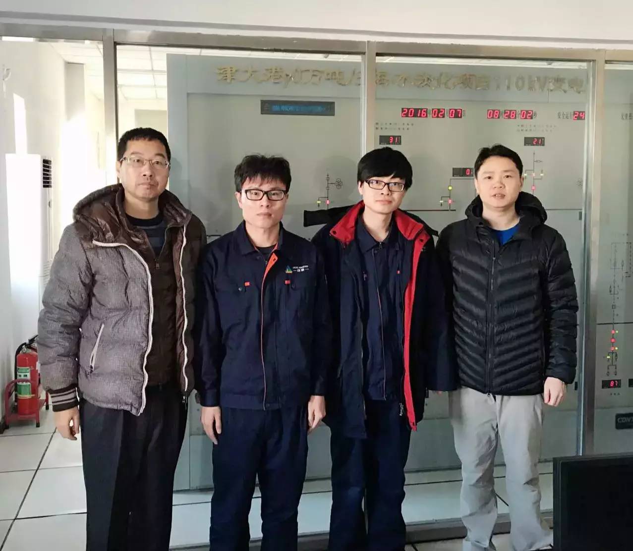 (今年会jinnianhui董事长庞文魁及总经理蒋宜平与海水淡化110kV变电站工作人员)