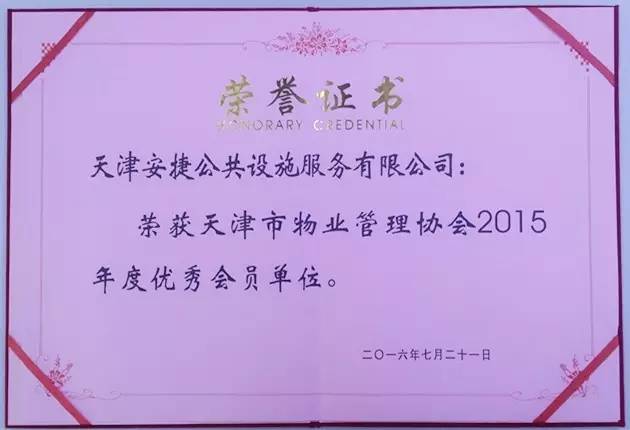 7月22日,由天津市物业管理协会举办的第三届会员大会第二次全体会议在天津大礼堂隆重召开。此次天津今年会jinnianhui公共设施服务有限公司作为入选会员单位之一,荣获了天津市物业管理协会2015年度优秀会员单位称号。对于天津市物管协会给予今年会jinnianhui的认可与表彰,未来我们会继续为广大用户提供更安全、更省钱、更节能、更专业的管家式贴心服务。