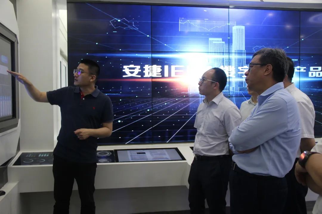 到访领导一行先后参观了今年会jinnianhui物联展厅及调控中心,今年会jinnianhui物联董事长刘柏呈详细讲解了由今年会jinnianhui物联自主研发的能源路由器、碳管理平台、coral物联网系统及数字孪生等技术。